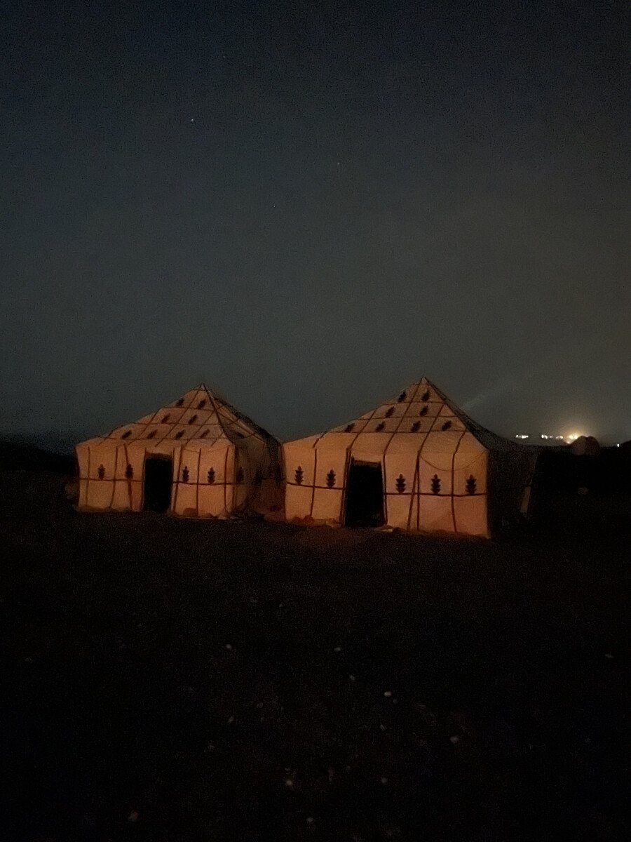 After a hearty breakfast, we'll drive to Essaouira, where we'll have lunch on the cliffs of Ouessen. From there, we'll set off on foot, assisted by our guide, along a scenic route of about 10 km, ascending and descending over rocky and sandy terrain. We'll stop for a refreshing break in the village of Sidi Kaouki, then set off again to a long beach and then to our bivouac. At the end of the day, we'll discover what typical Berber tents look like. A camp shower awaits us, followed by a bonfire beneath a sea of stars and the power of the sea.