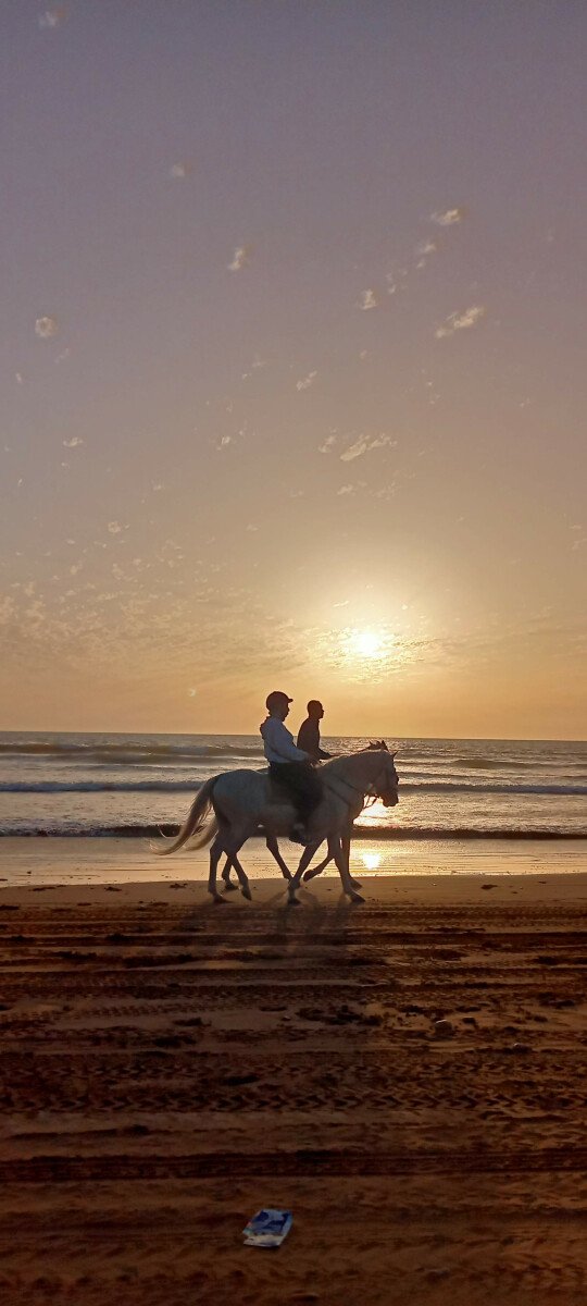 Après le coucher du soleil, vous reprendrez la balade à cheval ou à dos de chameau le long de la rivière Qsob, jusqu'à revenir au Ranch en un rien de temps, les yeux pleins de couleurs et de bons moments passés.
