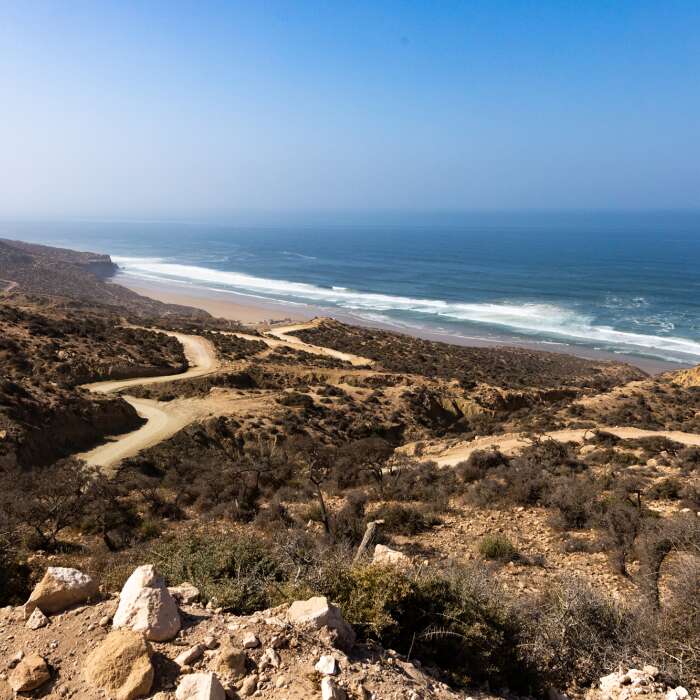 Deux heures et demie avant le coucher du soleil, rendez-vous au Ranch (situé à 5 minutes du Riad) pour la première aventure passionnante en quad sur les hautes dunes du Cap Sim au coucher du soleil et le long de la magnifique plage déserte.