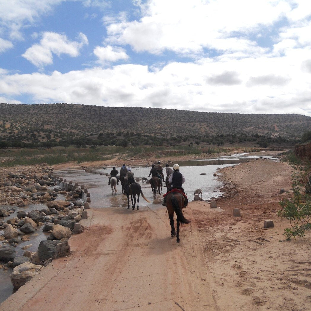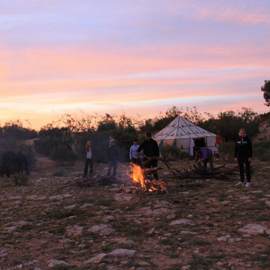 Accompagné de votre guide, vous aurez l'occasion de galoper et de trotter à travers les oueds (rivières) jusqu'à votre campement. Au bivouac, vous profiterez d'un feu de camp, d'un repas marocain traditionnel et d'une nuit sous une tente berbère.