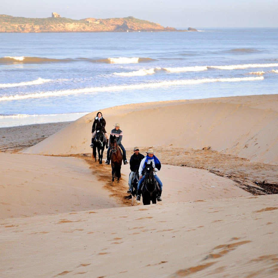 Au départ du Ranch de Diabat, vous partirez vers la forêt de mimosas et d'eucalyptus, à travers les dunes, et arriverez à la belle plage sauvage où vous pourrez galoper (selon votre expérience équestre) et respirer l'air salin de l'océan Atlantique.